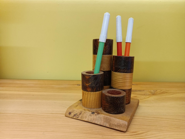 Porta matite in abete bianco von base rettangolare.
