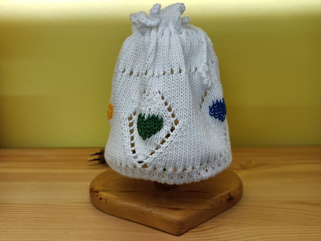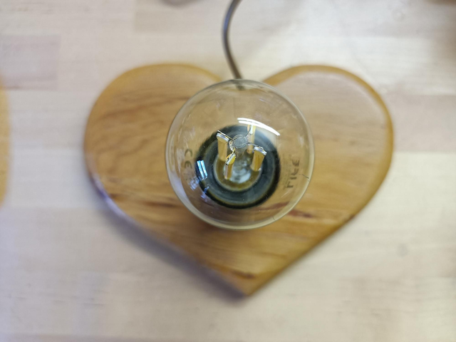 Abatjour a cuore realizzato in cirmolo( pino cembro) con paralume ricamato.